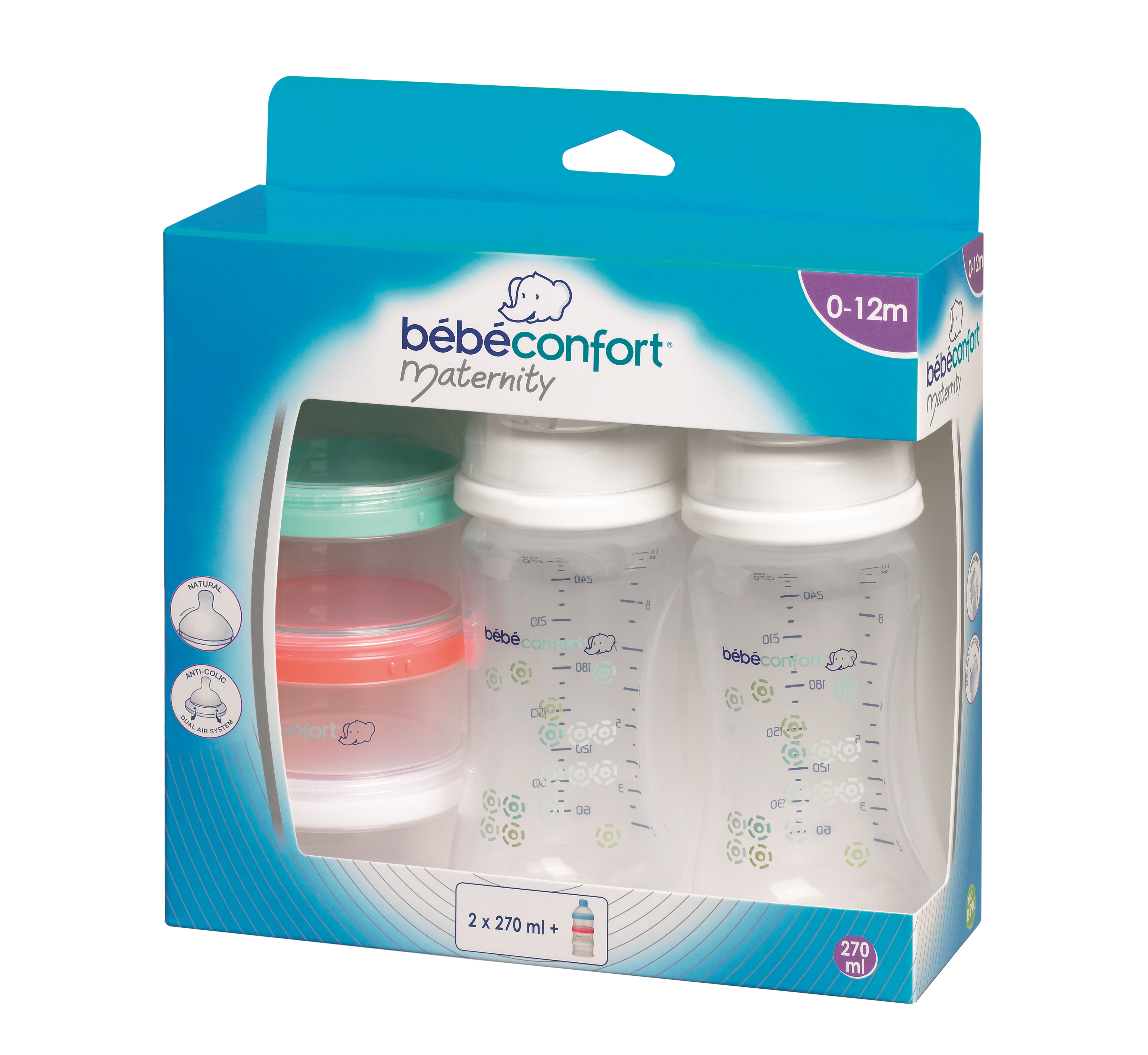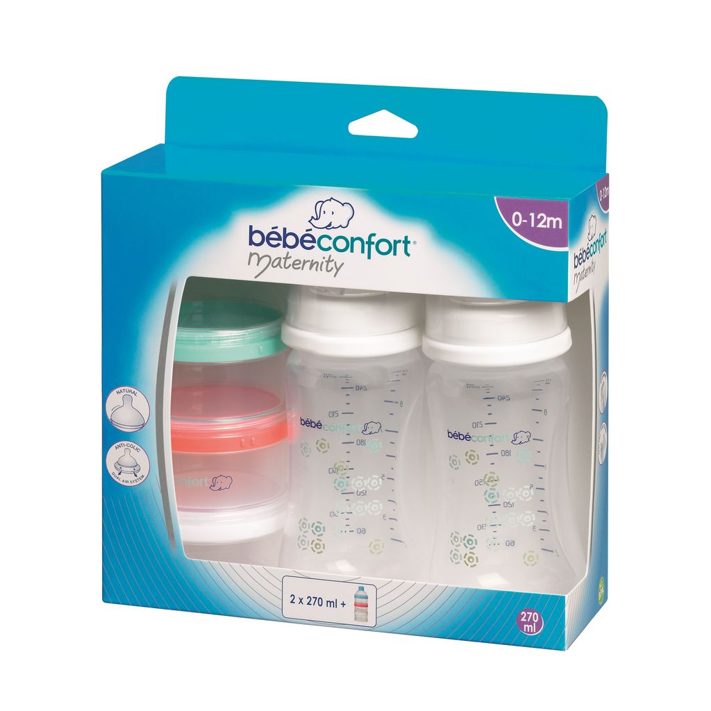 Lot de deux biberons Bébé confort 270 ML, tétines col large, avec doseur de lait offert!