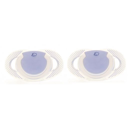 Lot de 2 sucettes en silicone Natural physio 0-6 mois. Ces sucettes ont été spécialement conçus pour soulager naturellement le besoin de succion.