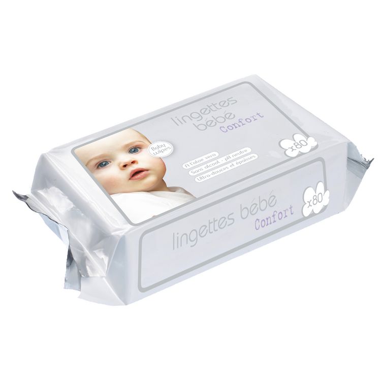 Lingettes bébé confort,aloe vera ultra-douces,testées sous contrôle dermatologique,sans parfum - pH neutre pour la peau. Recharge lingettes confort pour bébé à l'aloé vera x80