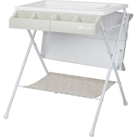 La table à langer pliable 2 en 1 : table à langer et baignoire. De la naissance jusqu'à 11Kg. Matelas à langer rembourré avec système de levage facile à une main.