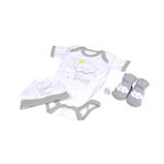 Ce coffret de naissance 3 pièces est un ensemble adorable spécialement conçu pour accueillir les nouveau-nés avec confort et style. Composé d'un body, d'un bonnet et de chaussettes assorties, ce coffret offre tout le nécessaire pour les premiers jours de bébé. Présenté dans une boîte carton élégante, c'est également une excellente idée de cadeau pour célébrer l'arrivée d'un nouveau-né.