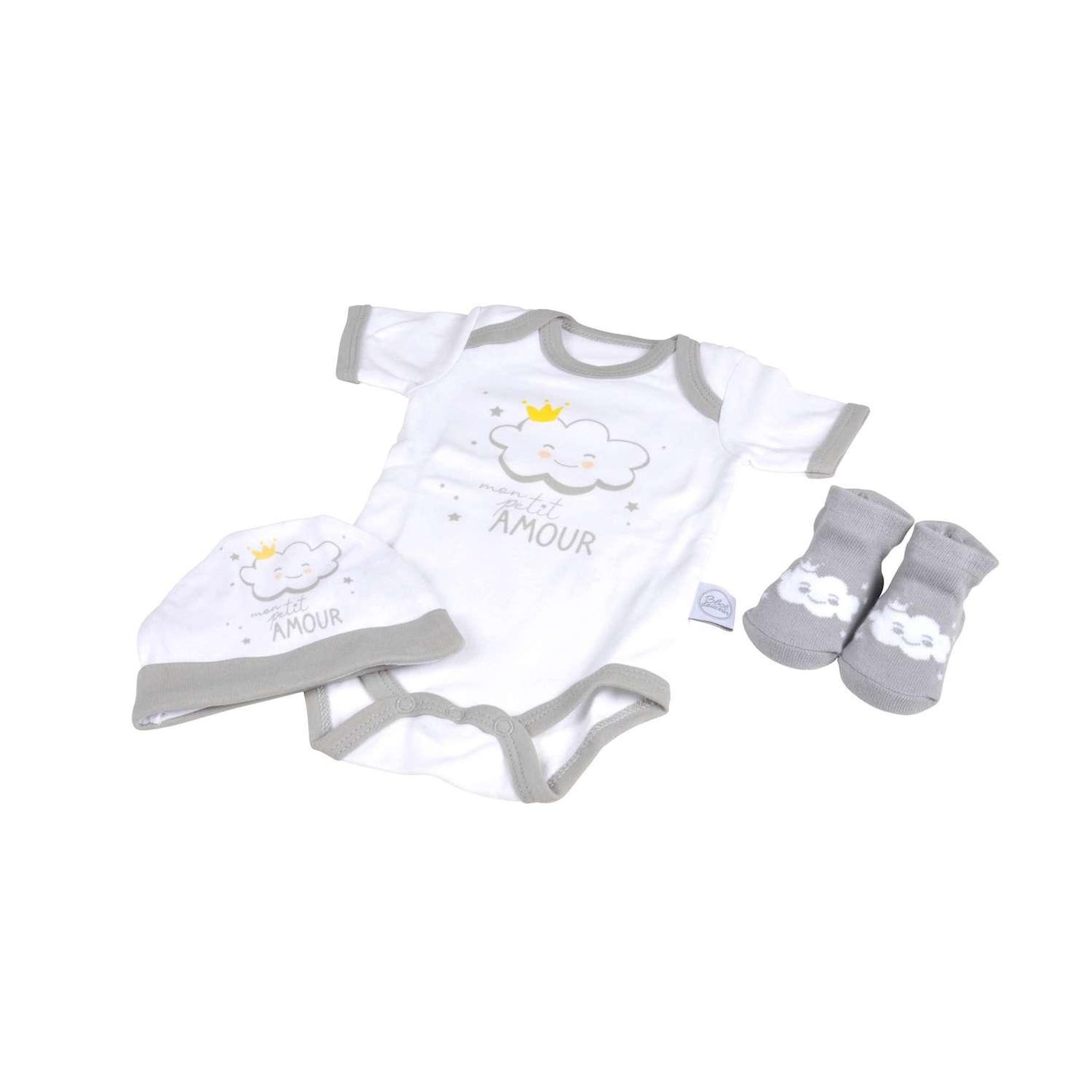 Coffret de naissance avec body, bonnet et chaussettes 0-1 mois - Petit papouilleur