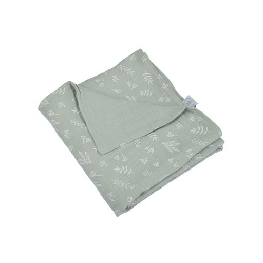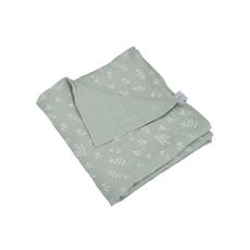 Couverture en gaze de coton imprimée feuilles - Céladon