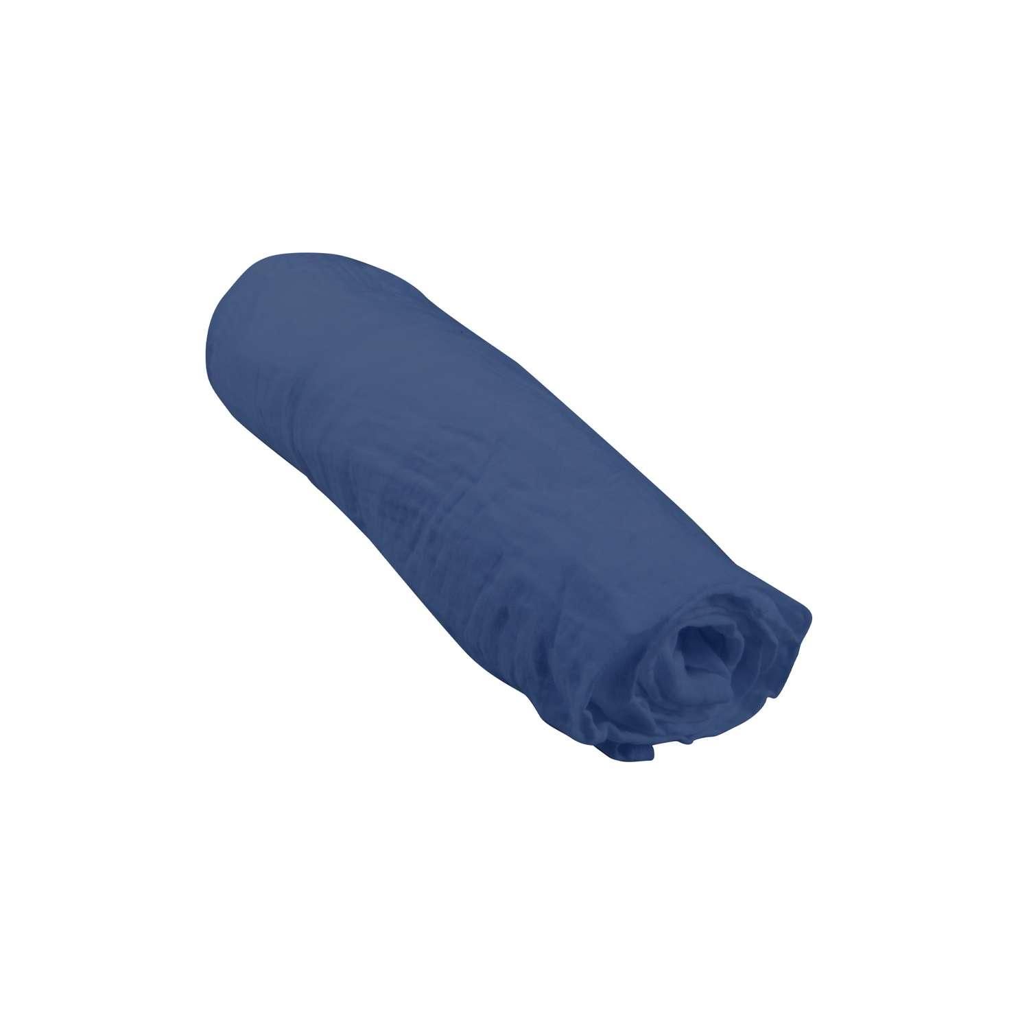 Drap housse en gaze de coton - 100% Coton - 60 x 120 cm - Bleu foncé