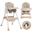 BEBELISSIMO - Chaise Haute Bébé Evolutive -dès 6 mois jusqu'à 20kg -Disco Pinguin - hauteur réglable - beige