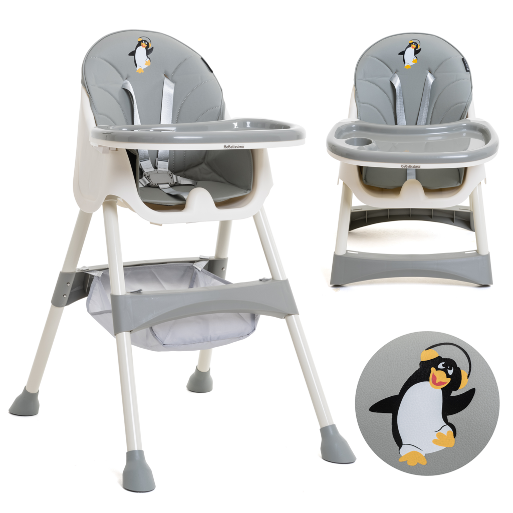 BEBELISSIMO - Chaise Haute Bébé Evolutive -dès 6 mois jusqu'à 20kg -Disco Pinguin - hauteur réglable - gris