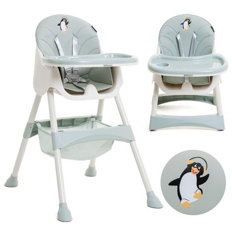 BEBELISSIMO - Chaise Haute Bébé Evolutive -dès 6 mois jusqu'à 20kg -Disco Pinguin - hauteur réglable - vert