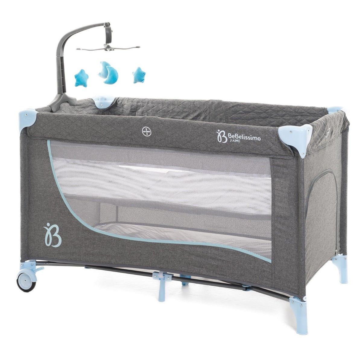 BEBELISSIMO - Lit parapluie bébé - berceau bébé - dès la naissance - Nuit - lit pliant - 2 niveaux - bleu