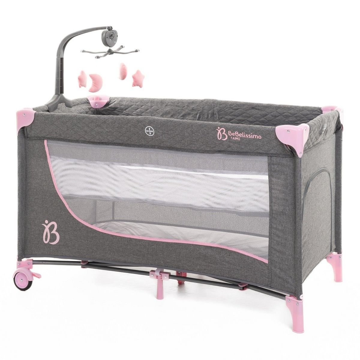 BEBELISSIMO - Lit parapluie bébé - berceau bébé - dès la naissance - Nuit - lit pliant - 2 niveaux - rose