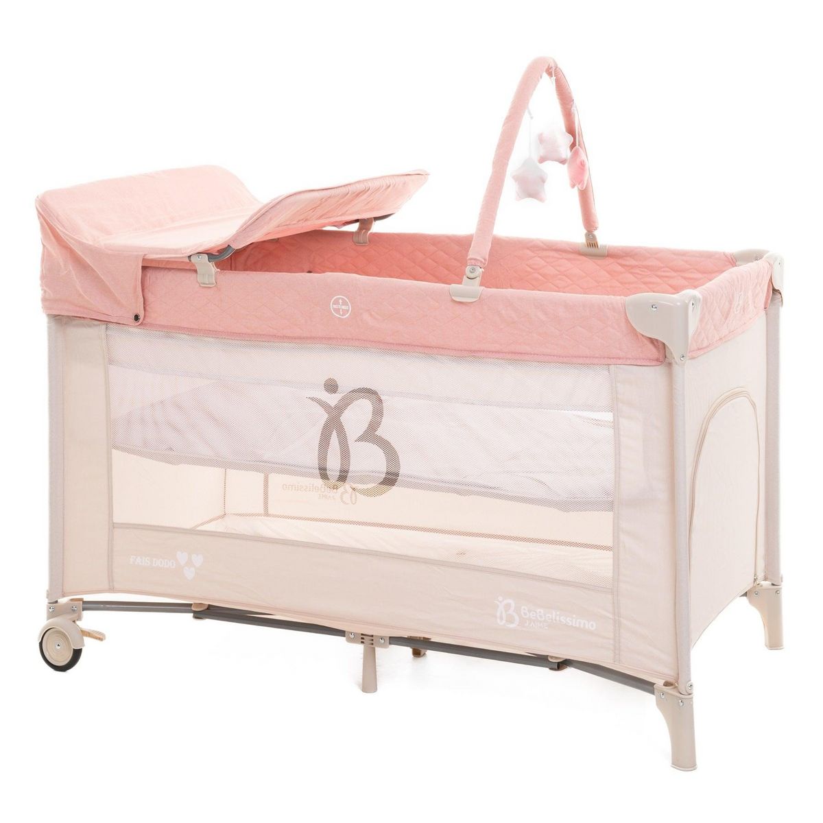 BEBELISSIMO - Lit parapluie bébé - lit pliant - dès la naissance - Fais dodo - table à langer et jouets - rose