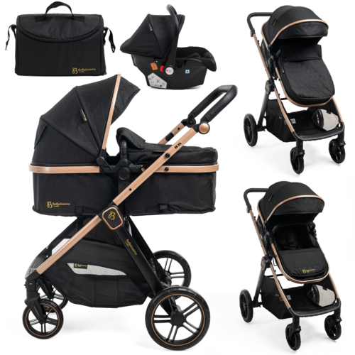 BEBELISSIMO - Poussette combinée trio 3 en 1 - siège auto 0+ IRIS – nacelle – dès la naissance – jusqu'à 22kg - noir