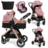 BEBELISSIMO - Poussette combinée trio 3 en 1 - siège auto 0m – nacelle – dès la naissance – jusqu'à 22kg – Nicea - rose