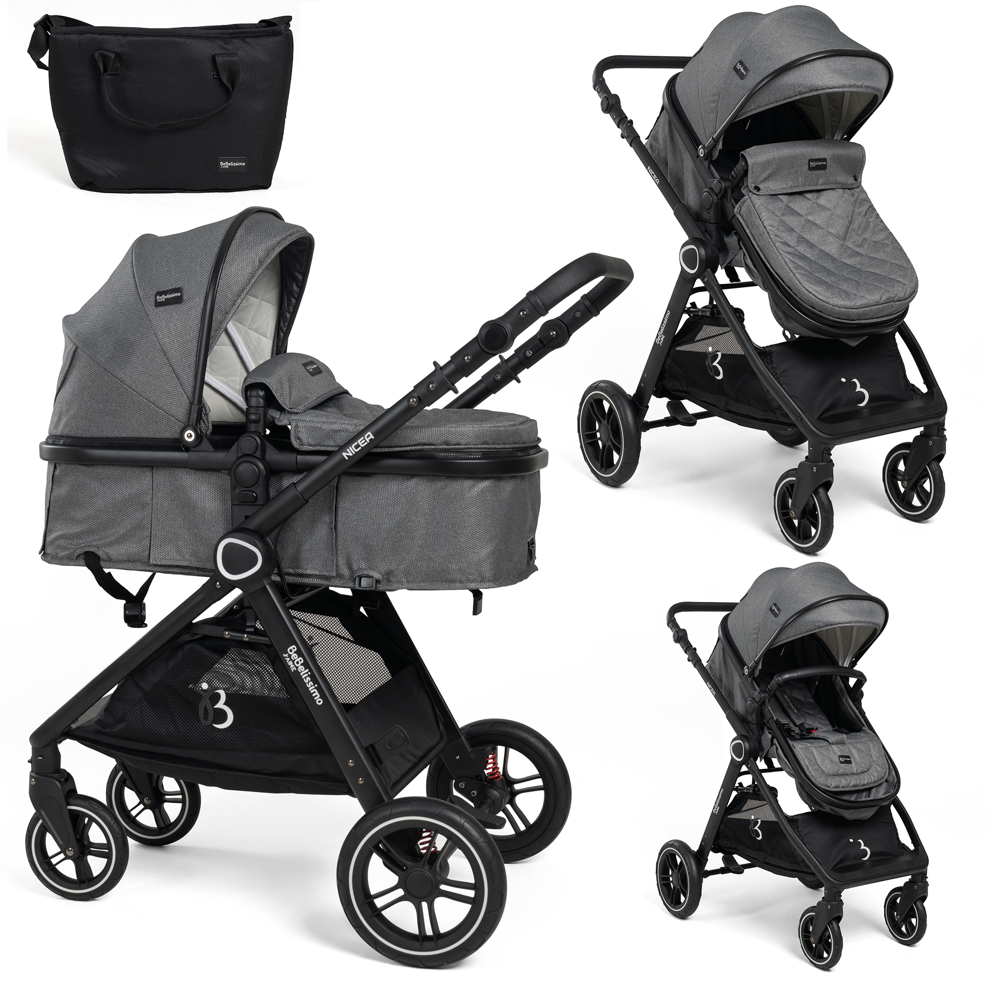 Bebelissimo - Poussette transformable - combinée - convertible - 2 en 1 -poids 0-22kg - Nicea - gris