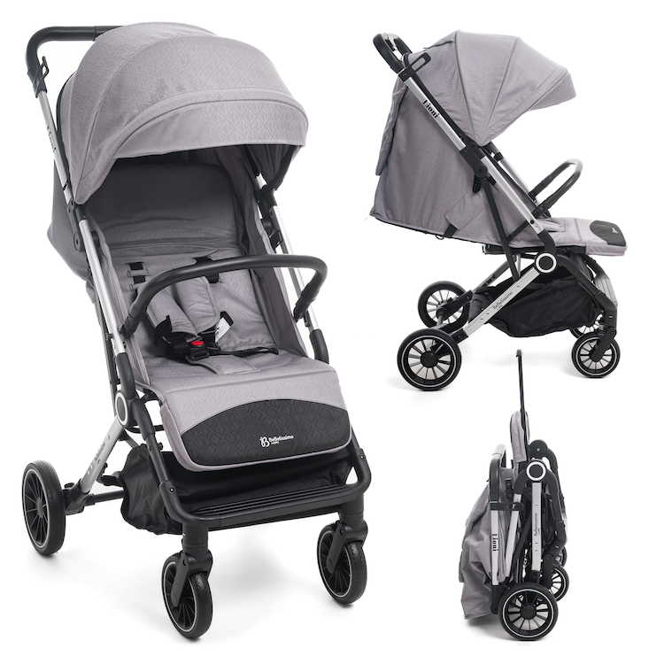 - Pliage Une Main ultra compact : la poussette Bebelissimo se plie à une main ce qui permet de libérer un bras pour tenir bébé