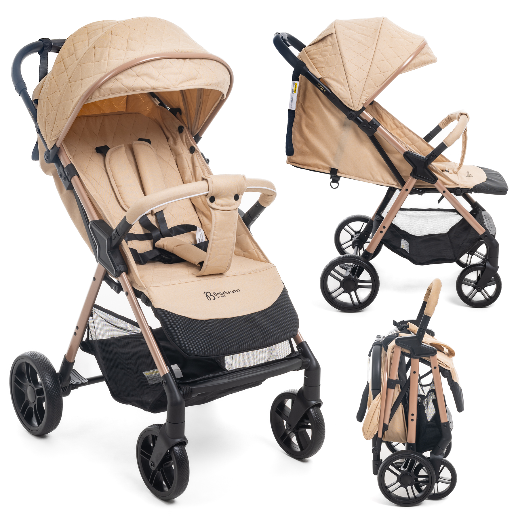 - Pliage Une Main ultra compact : la poussette Bebelissimo se plie à une main ce qui permet de libérer un bras pour tenir bébé