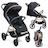 Poussette Bébé Canne Ultra Compacte – Légère – Pliage à Une Main – Noix - noir