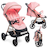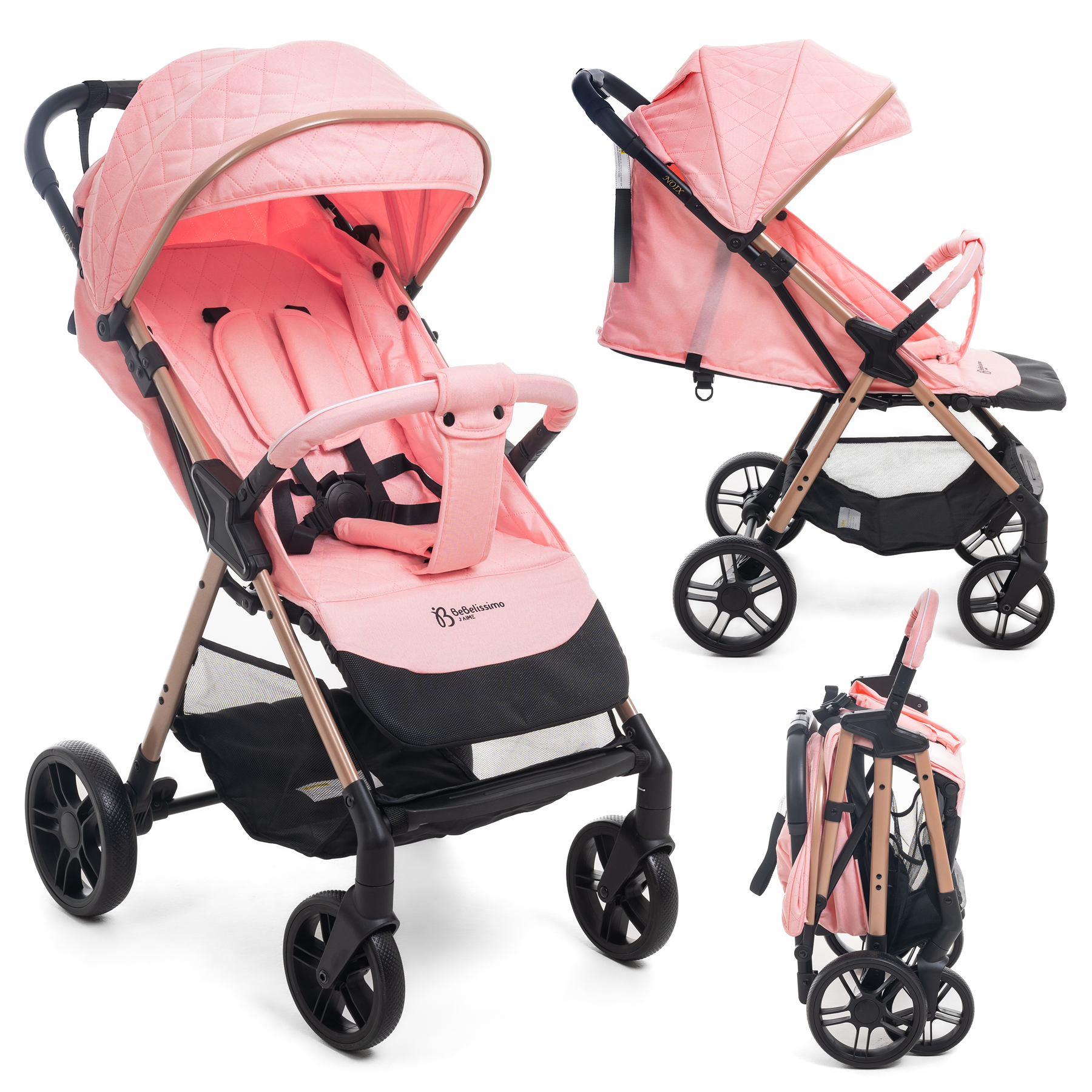 Poussette Bébé Canne Ultra Compacte – Légère – Pliage à Une Main – Noix - rose