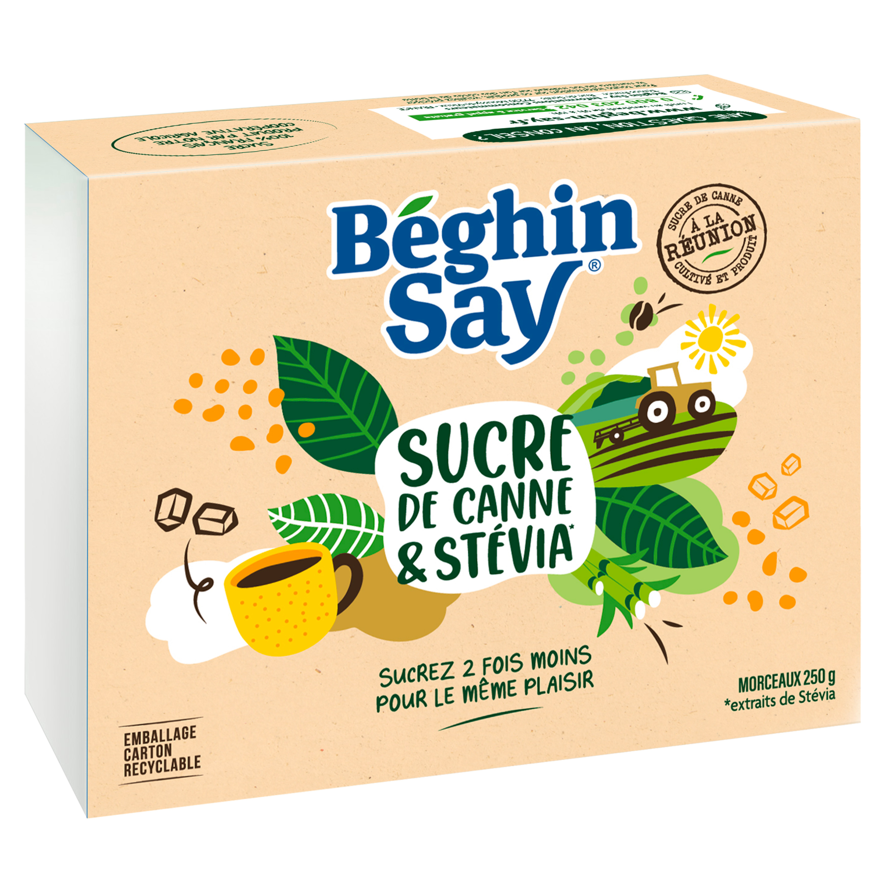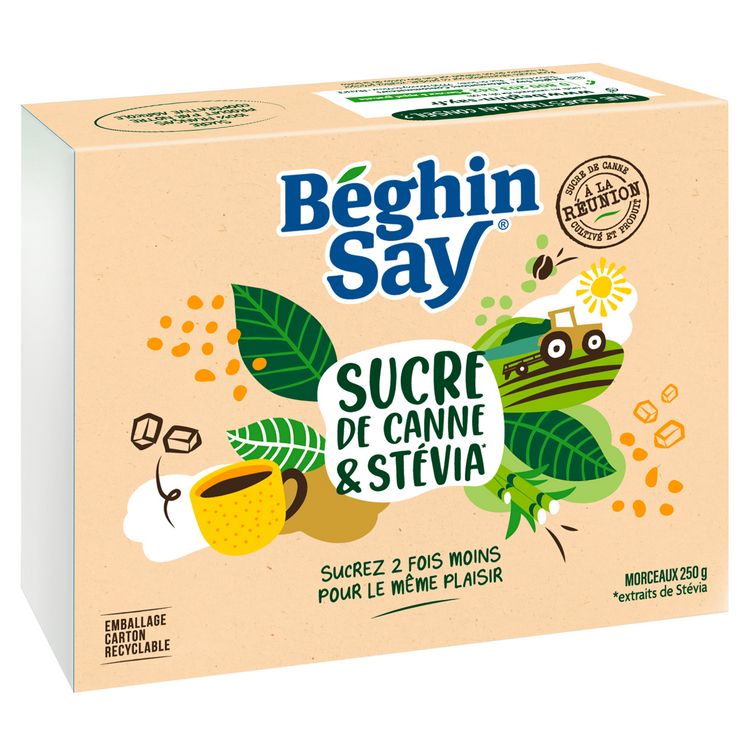 1 morceau de Séréline au sucre roux et aux extraits de Stévia a le même pouvoir sucrant qu'1 morceau de sucre habituel