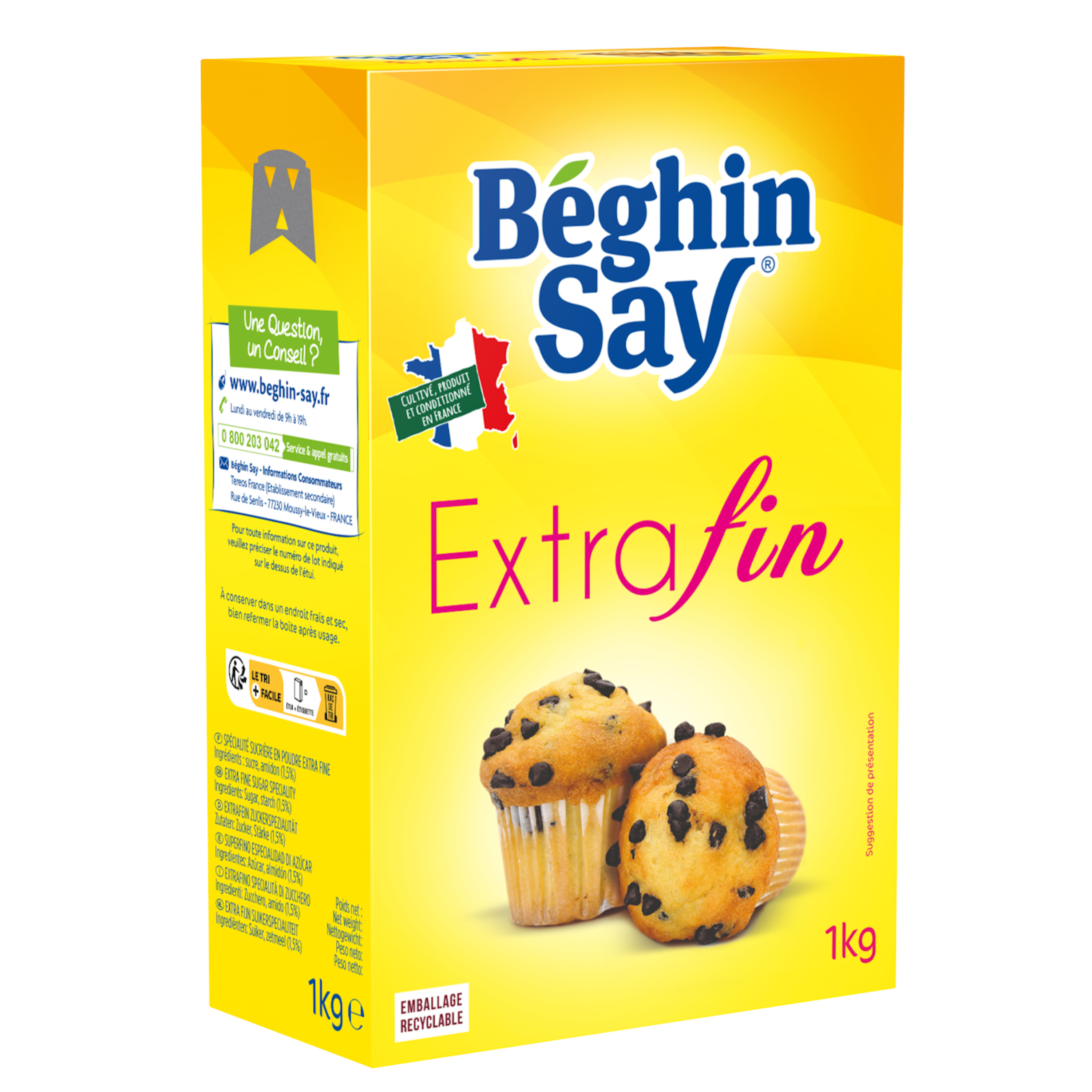 L'Extra Fin est idéal pour des pâtisseries fines et légères. Il s'incorpore rapidement dans toutes les préparations, même sans cuisson. L'Extra-fin de Béghin Say est cultivé et produit en France.