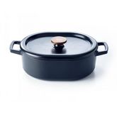 Beka 15141314 Daubière Nori Beka 15141314 en fonte émaillée avec triple fonte émaillée intérieur et extérieur : bonne répartition de la chaleur. Cette cocotte en fonte avec bouton de couleur bronze ne passera pas inaperçue dans votre cuisine et sur votre table. La fonte est un matériau durable, qui diffuse et préserve la chaleur de façon optimale. Cette forme rovale unique (ni ronde ni ovale) offre une capacité allant jusqu'à 5,5 litres. La fonte émaillée est directement prête à l'emploi. Elle est parfaite pour dorer, mijoter, caraméliser et idéale pour cuire au four. La finition épaisse en émail résiste aux rayures et facilite grandement le nettoyage et l'entretien de la cocotte. Le fond permet d'éviter les rayures sur votre plaque de cuisson et votre plan de travail. Grâce aux picots sous le couvercle, le jus de cuisson qui s'évapore est récupéré de manière optimale pour se répartir uniformément sur les aliments. Cet arrosage naturel et continu, permet aux viandes de rester tendres, aux légumes de garder leur moelleux et les saveurs sont préservées.