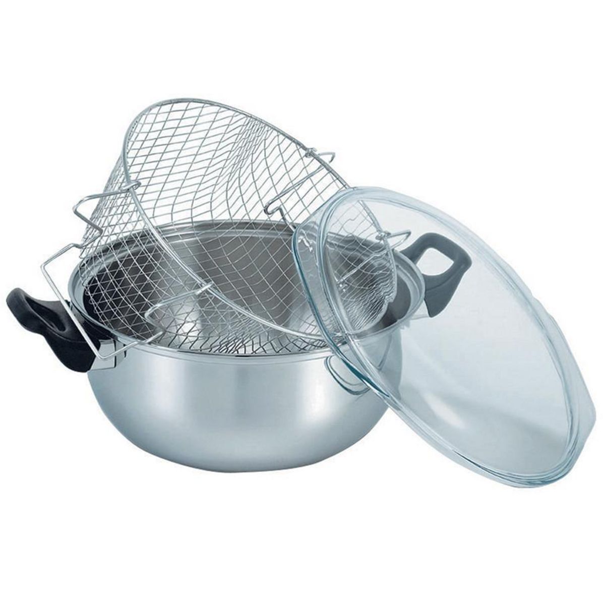 Beka 14302014 Friteuse Beka 14302014 en inox 18/10 pour frire vos frites, beignets, accras ou autres tempuras .... Panier avec poignées rabattables. Couvercle en verre avec larges poignées en bakélite qui isolent de la chaleur. Extérieur et intérieur brillants.