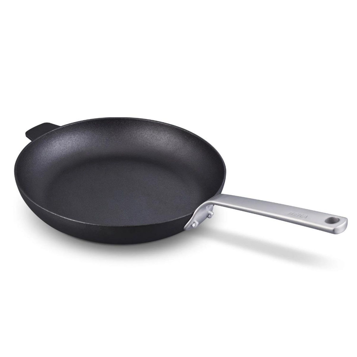 Beka 101045 Votre poêle 101045 de Beka en fonte de fer est déjà pré-culottée avec une patine naturelle ce qui lui permet d'être prête à l'emploi. Faire frire avec de l'huile dans de la fonte de fer non-émaillée améliore avec le temps la couche naturelle antiadhésive. La touche finale de ce design intemporel consiste en une élégante et longue poignée en acier inoxydable.