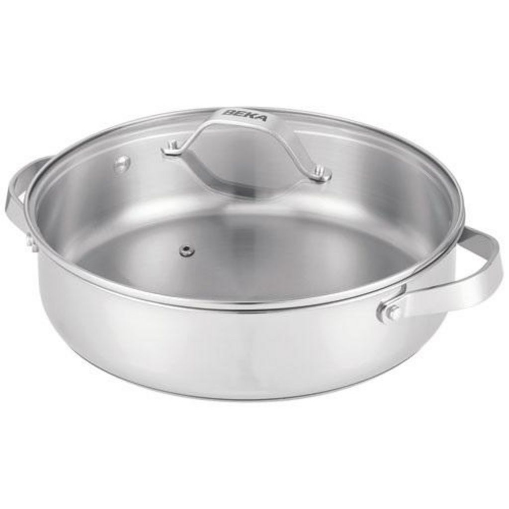 Beka 101037 Découvrez la Sauteuse 2 anses Cicla 101037 de Beka avec couvercle en verre 28 cm en acier inoxydable recyclé. Une véritable révolution dans le monde de la cuisine. Notre collection Cicla allie élégance, durabilité et performance pour vous offrir une expérience culinaire exceptionnelle. La Sauteuse Cicla est dotée d'une base encapsulée en 3 couches qui assure une distribution uniforme de la chaleur, garantissant ainsi des plats parfaitement cuits à chaque fois. Plus de zones chaudes ou froides, seulement une cuisson homogène qui sublime vos créations culinaires. Le bord arrondi de la sauteuse permet de verser sans éclaboussures, rendant chaque expérience culinaire facile et agréable. Plus besoin de vous soucier des déversements gênants. Vous pouvez maintenant cuisiner en toute tranquillité.