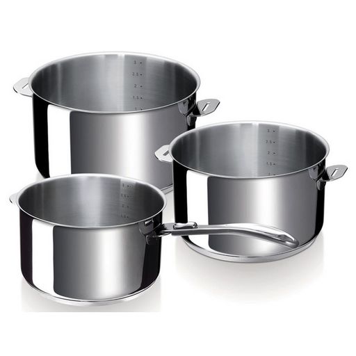 Beka 12326974 Série de 3 casseroles Beka 12326974.- Evolution- Le haut de gamme en poignées amovibles- Gain de place et praticité d'utilisation !- Pratique, flexible et peu encombrante, cette gamme s'adapte à toutes les envies pour réaliser de délicieuses recettes- L'espace est mis à profit de manière optimale grâce aux manche et aux anses amovibles- En inox 18/10- Extérieur brillant- Intérieur brillant- Forme droite et belle hauteur de jupe- Entièrement modulable- Triple fond capsulé permettant une diffusion rapide de la chaleur- Fixation 100 % fiable des poignées grâce à un indicateur de sécurité optique et sensitif- Poignée amovible en inox, restant froide pour un confort optimal- Graduation intérieure pour un dosage facile.