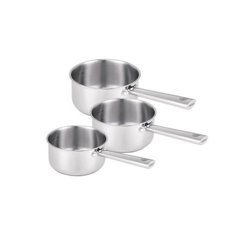 Beka 101041 Série de 3 casseroles 16/18/20 cm Cicla Beka 101041. Une gamme large au look moderne ! Cicla est fabriquée avec de l'acier inoxydable recyclé et contribue à la lutte pour sauver notre planète. L'acier inoxydable recyclé permet non seulement de préserver les ressources de la planète, mais c'est aussi le matériau le plus durable pour les ustensiles de cuisine. Corps à 91% en acier inoxydable recyclé, certifié RCS. Bec verseur, idéal pour verser sans salir votre plan de travail. Poignée ergonomique rivetée en fonte d'inox, offrant une bonne prise en main pour une sécurité optimale.