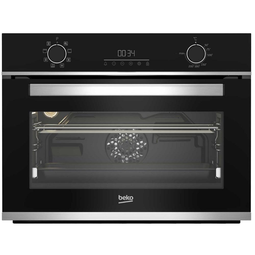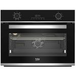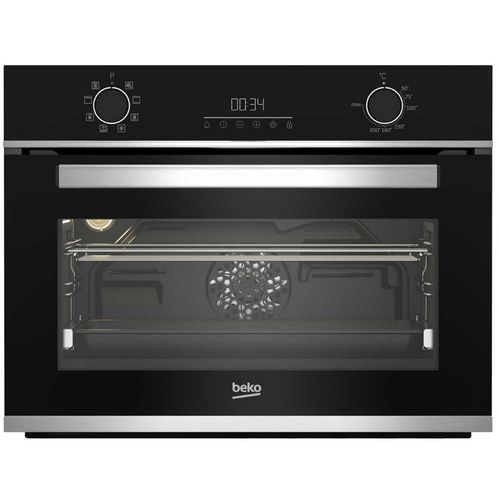 Beko BBCM13300XC Four intégrable multifonction Beko BBCM13300XC pour des parfaits résultats de cuisson. La cuisson 3D permet de cuire sur 3 niveaux différents en même temps, grâce à l'utilisation simultanée des résistances de voûte, de sole et annulaire. L'air est réparti dans toute la cavité du fou