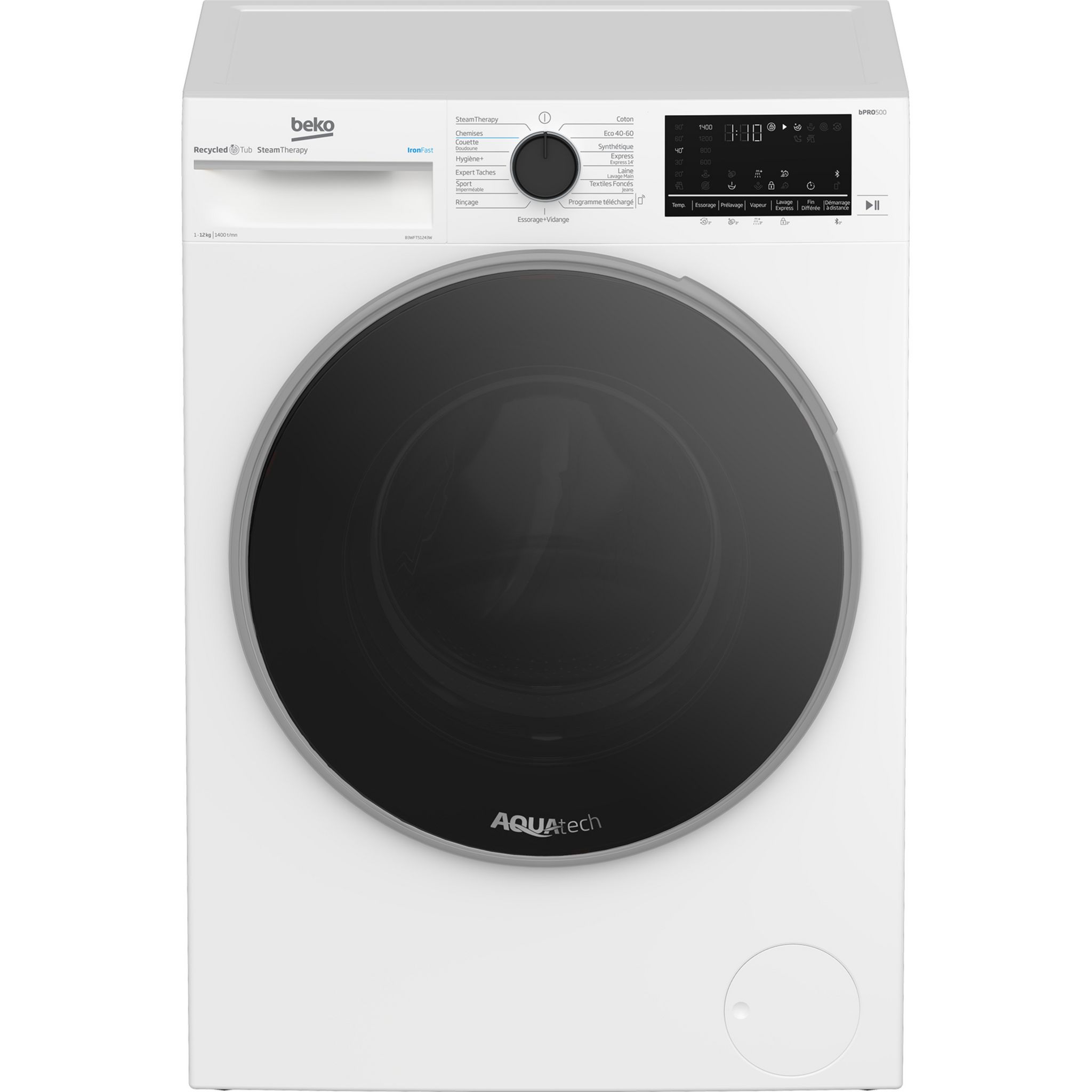 Lave linge hublot à induction B3WFT51243W, 12 kg, 1400 T/min, A