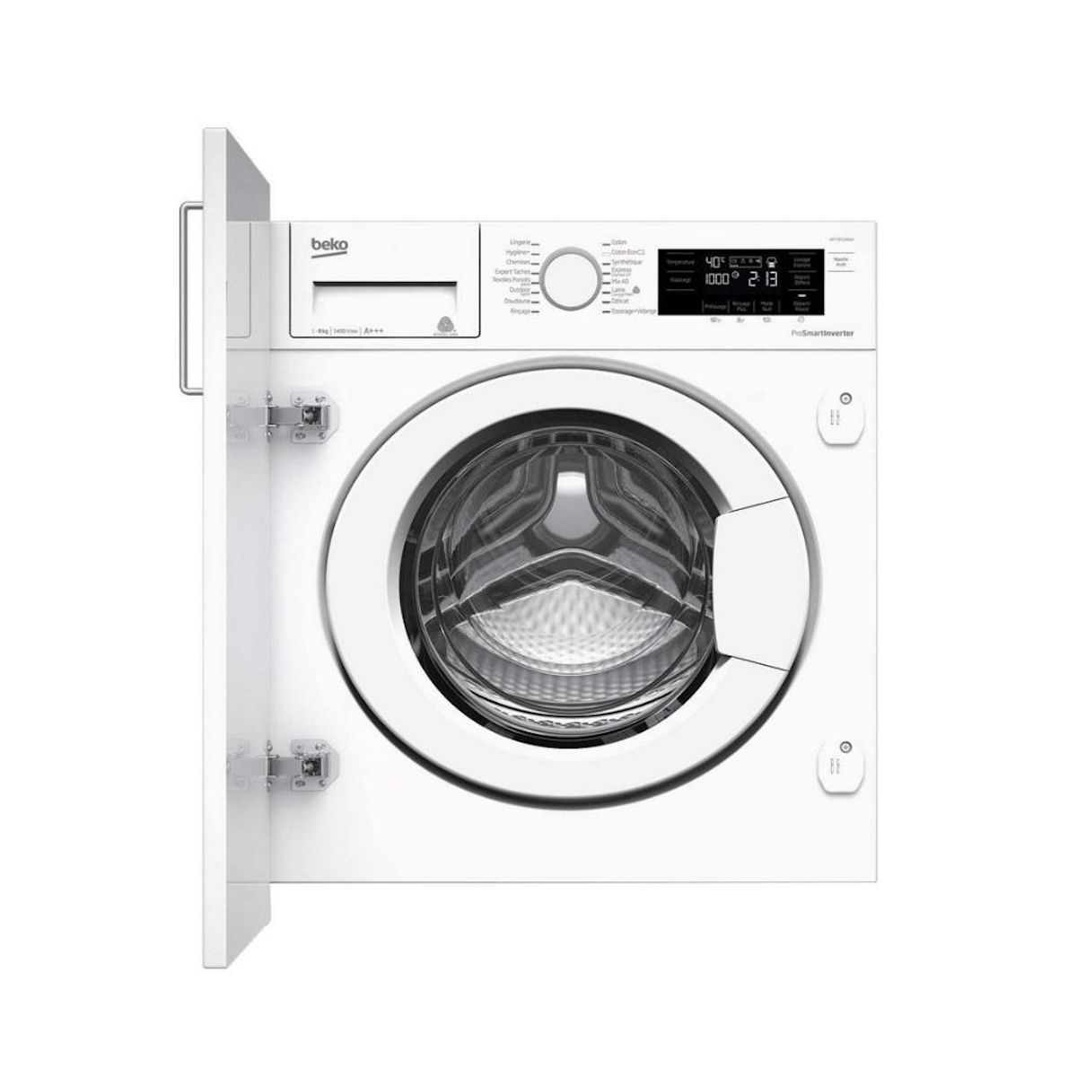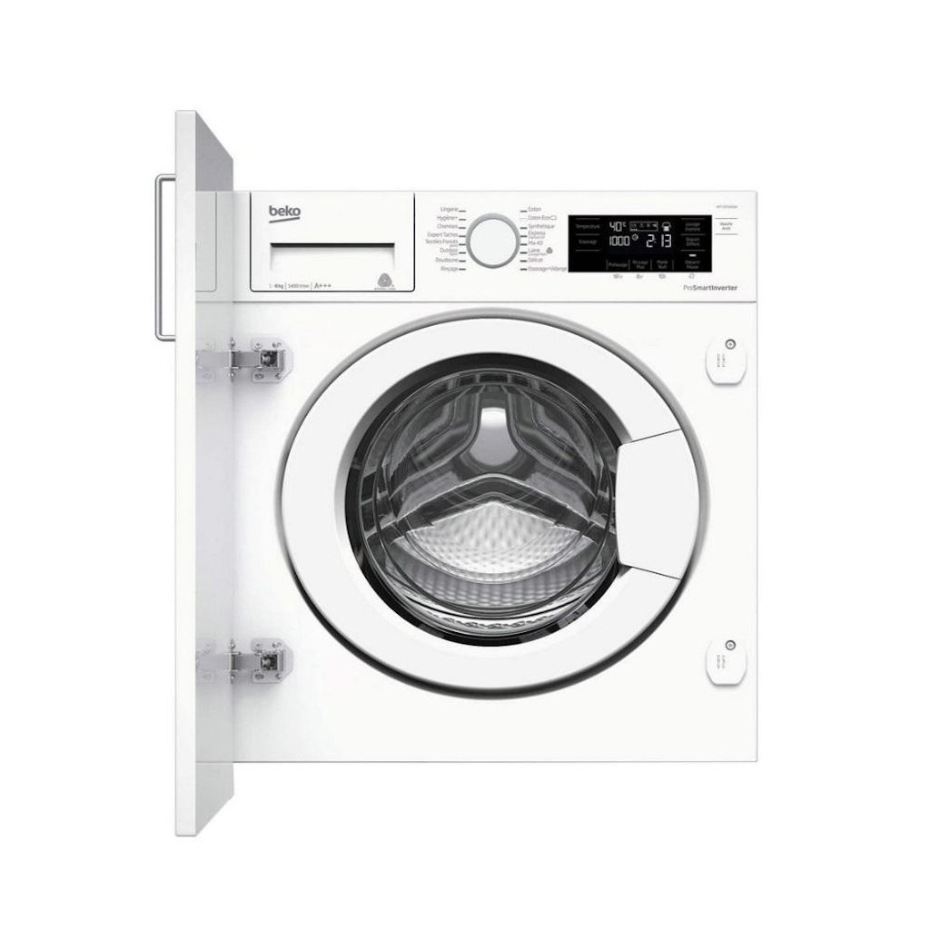 Beko WITC8410B0W Lave-linge intégrable Beko WITC8410B0W avec Moteur ProSmart Inverter. Ce moteur à induction est plus robuste et silencieux. Grâce à sa conception sans balais, les frottements et les échauffements sont réduits ce qui lui garantit une plus grande longévité, mais également une meilleure efficacité de lavage. Le niveau à bulle intégré sous le bac à produit vous permet d'être sûr que votre lave-linge est installé à la perfection en deux temps trois mouvements ! Ce lave-linge intégrable est équipé d'un système de réglage des pieds arrières depuis l'avant de l'appareil. L'installation devient encore plus simple. Grâce au départ différé 0-19 heures, vous pouvez mieux gérer votre emploi du temps et faire des économies en bénéficiant des tarifications heures creuses. Les parois anti-vibrations permettent d'améliorer la perception sonore en atténuant les vibrations et le bruit lors du fonctionnement du lave-linge.