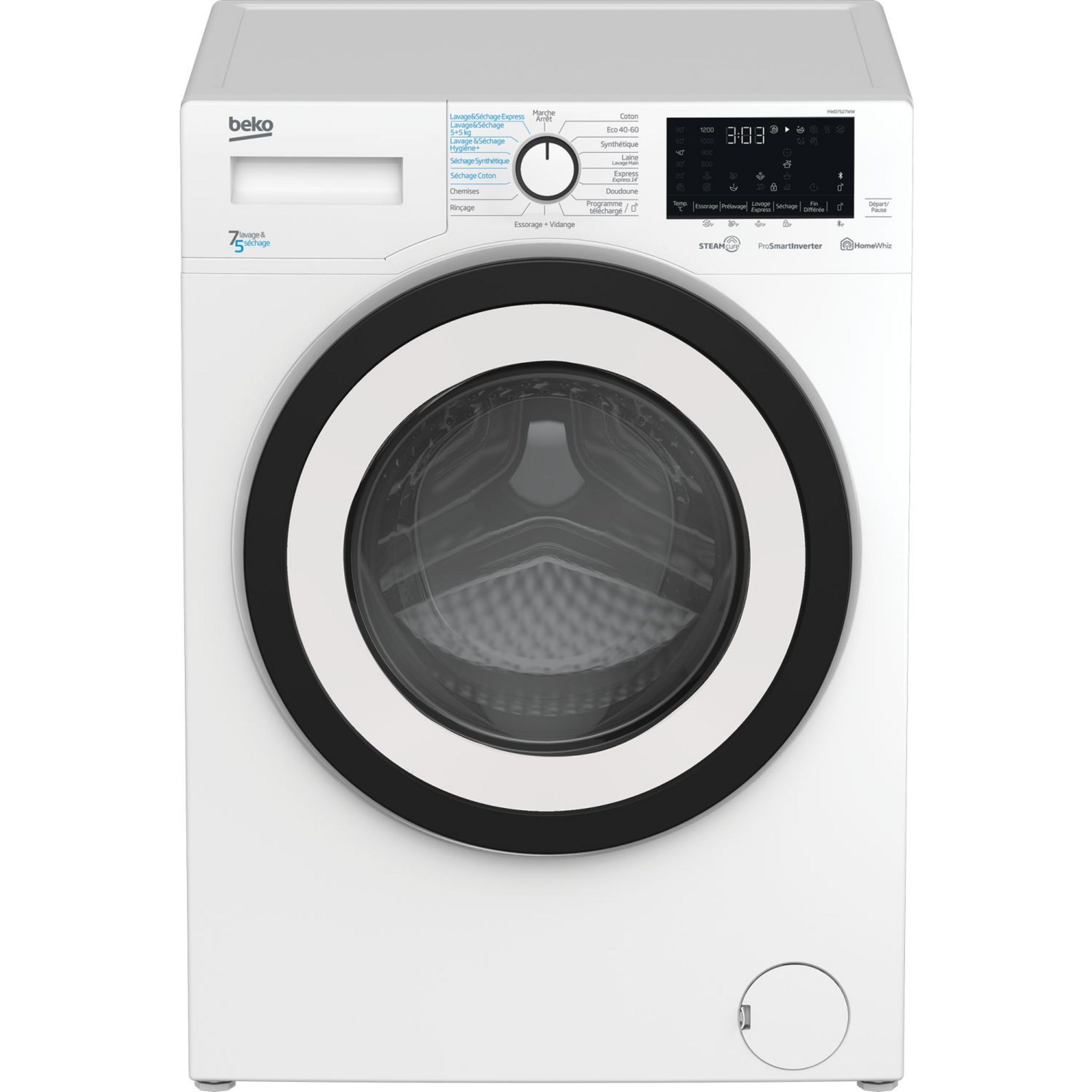 Lave linge séchant hublot HWD7527WW, 7 kg lavage, 5 kg séchage, 1200 T/min, Condensation, C