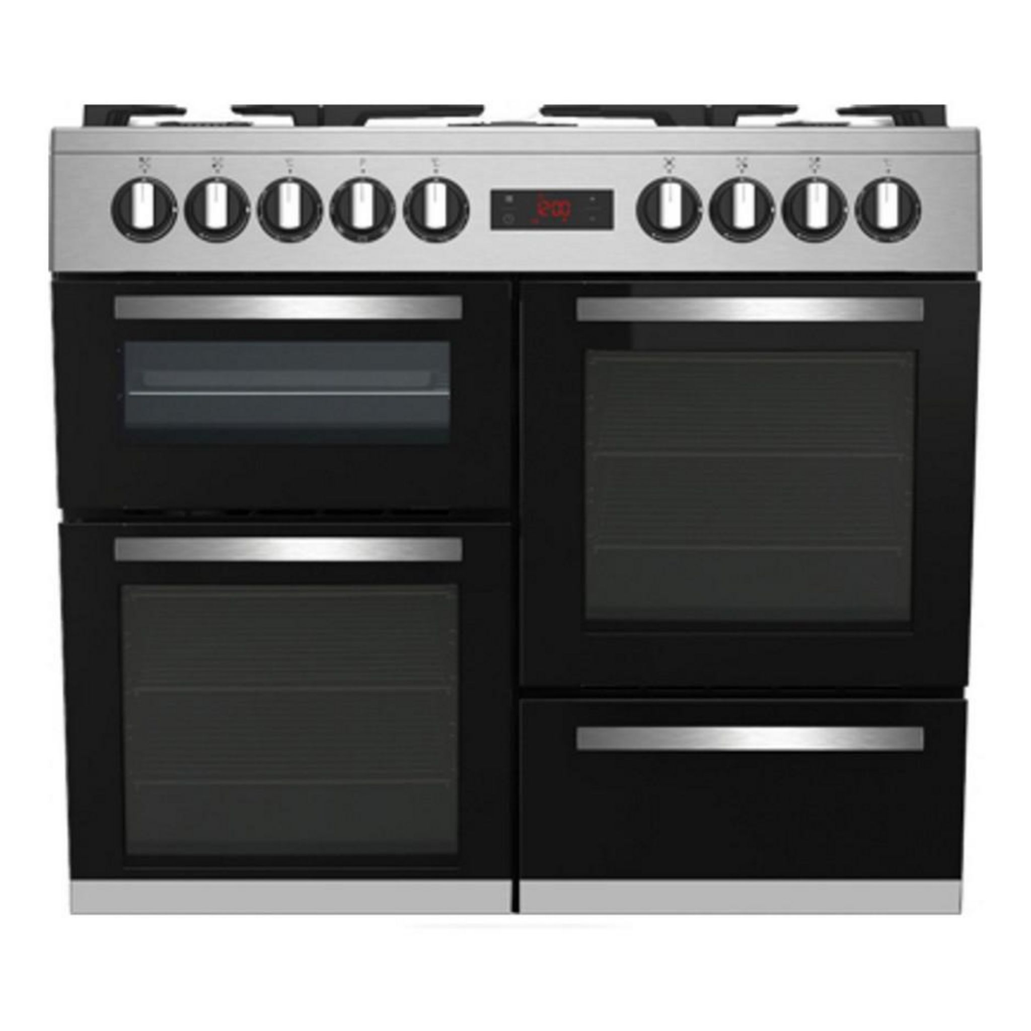 Beko PF335325DX Piano de cuisson Beko PF335325DX comprenant une table de cuisson gaz à 7 foyers et 3 fours électriques catalyse.Multifour (3 fours)Ce piano de cuisson est équipé de trois fours pour vous offrir une multitude de solutions de cuisson. Vous pouvez préparer en même temps une tarte, un rôti et de nombreux plats à des températures différentes, tout en évitant le mélange d'odeurs.