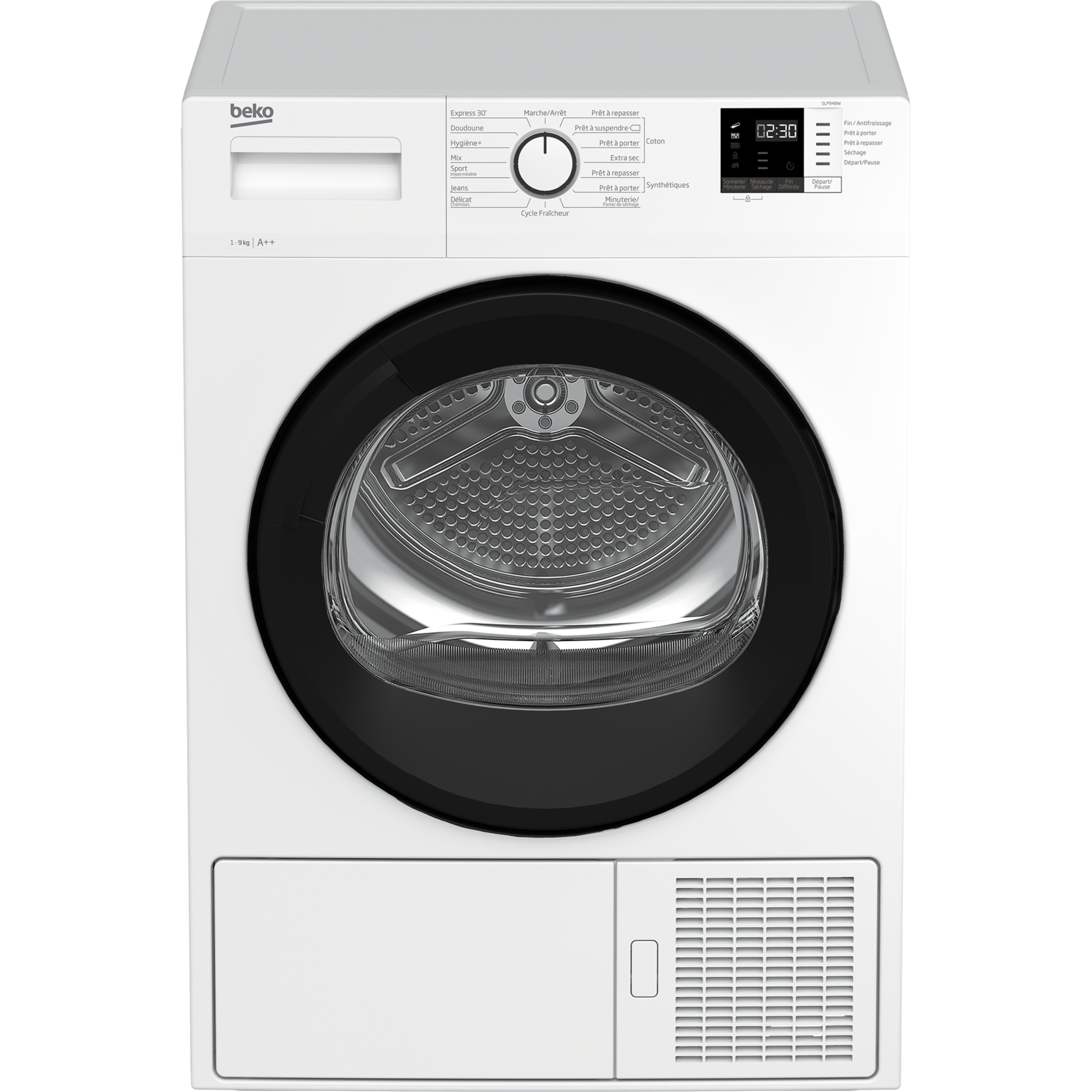 Sèche linge hublot SLP94BW, 9 kg, Pompe à chaleur, A++