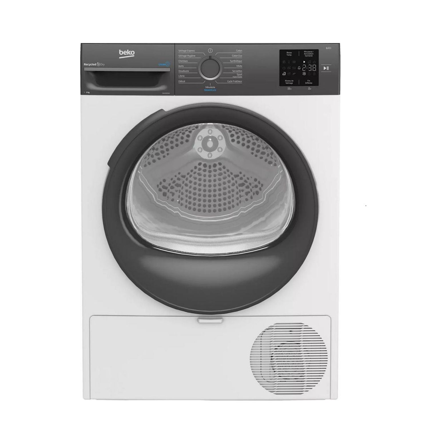 Beko D3H29D93S Sèche-linge pompe à chaleur b300 d3h29d93s de Beko.Pompe à chaleur : Consommez un minimum d'énergie.La pompe à chaleur permet de réutiliser l'air chaud à l'intérieur du sèche-linge.SteamCure : Rafraîchissez et réduisez le froissement de votre linge.La vapeur rafraîchit et désodorise j