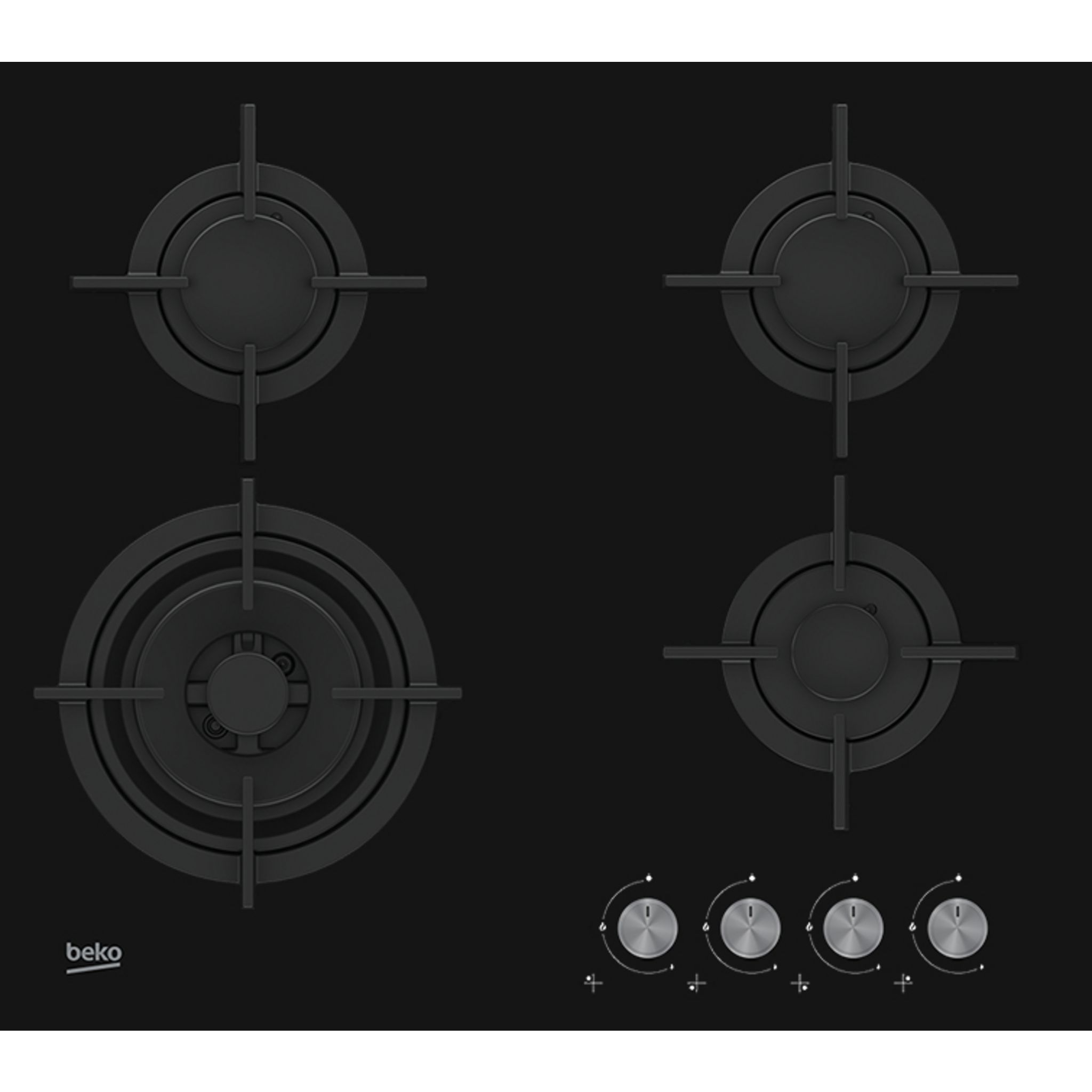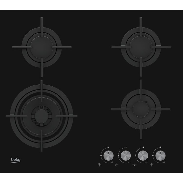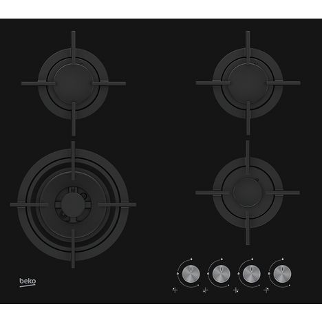 Table de cuisson à gaz HILW64222S, 60 cm, 4 foyers gaz dont 1 Wok double couronne