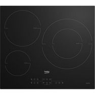 Beko HII63205MT Table de cuisson à induction Beko HII63205MT dotée de 3 foyers dont 1 zone Ø 18-32 cm 3,6 kW. 9 niveaux de sécurité : Anti-surchauffe, Verrouillage clavier, Arrêt auto, Voyant On/Off, Anti-débordement, Verrouillage nettoyage, Témoins de chaleur résiduelle, Détection de récipients, Dé