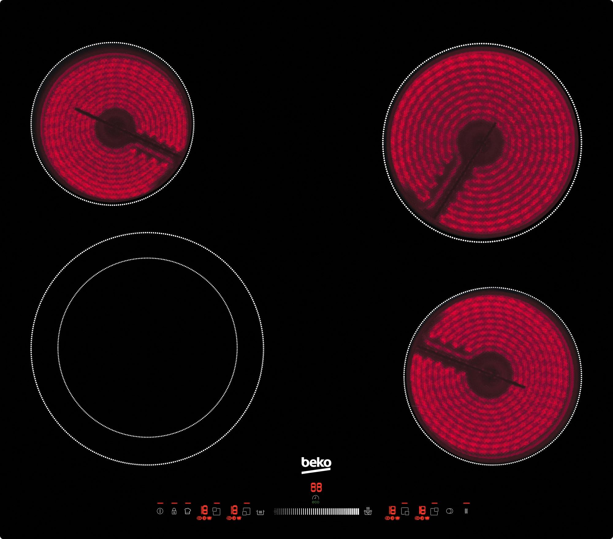 Beko HIC64502T Table de cuisson vitrocéramique Beko HIC64502T. Evitez toute manipulation inopinée Pilotez votre table au doigt et à l'?il Appréciez la dimension idéale, sans surprise.Sécurité enfantLe verrouillage du clavier peut être activé afin de bloquer toutes les fonctions de la table, évitant toutes manipulations inopportunes.Bandeau de commandes slide controlAvec le bandeau de commandes slide control, vous pouvez cuisiner avec la précision des grands chefs. Le curseur sensitif vous donne accès à 19 niveaux de puissance pour s'adapter à tous vos besoins de cuisson.60 cmUne dimension standard qui vous procure un bel espace de travail.