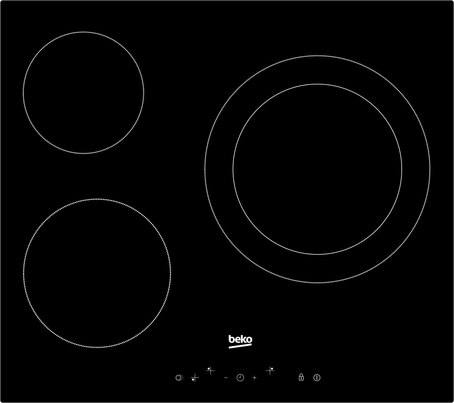 Beko HIC63402T Table de cuisson vitrocéramique Beko HIC63402T. Agrandissez votre espace de travail, bénéfiez d'une table moderne et performante, des commandes simples, profitez d'une grande modularité et économisez de l'énergie avec l'Eco Timer.60 cmUne dimension standard qui vous procure un bel esp