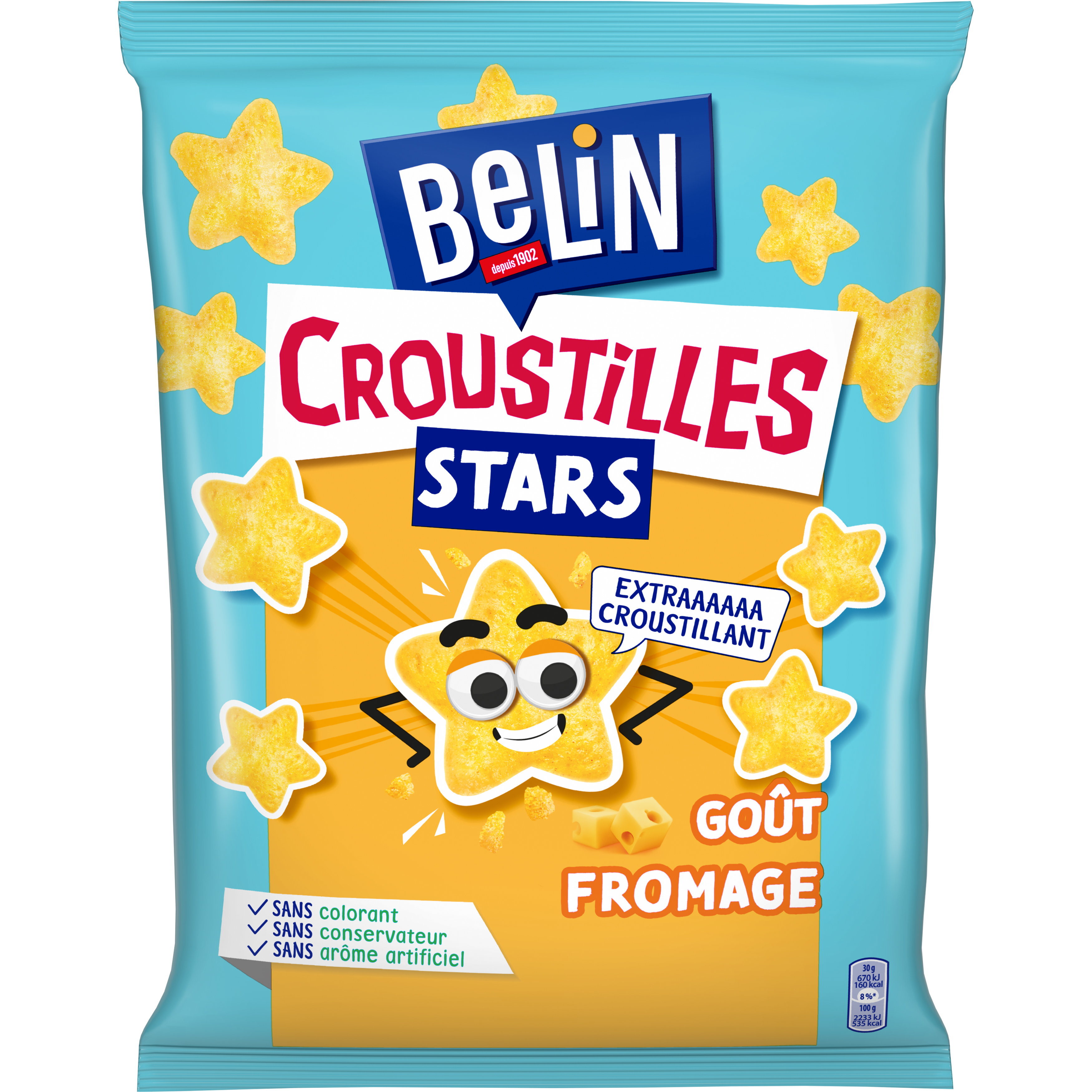 Découvrez Croustilles Stars de Belin ! Vous allez adorer leur texture légère et croustillante ! Croustille stars au goût Fromage c'est aussi un goût irrésistible ! En forme d'étoile, sans colorant, sans conservateur, et sans arôme artificiel, elles raviront les apéro de toute la famille, pour un moment de partage et de convivialité ! Craquez pour l'apéro avec Belin !