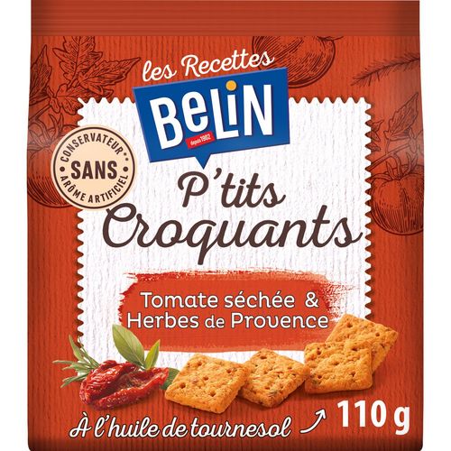 Ingrédients : Farine de BLÉ, huile de tournesol 22 %, tomate séchée 6,0 %, LAIT écrémé en poudre, amidon de BLÉ, sucre, sel, herbes de Provence 0,5 %, poivre noir en poudre.