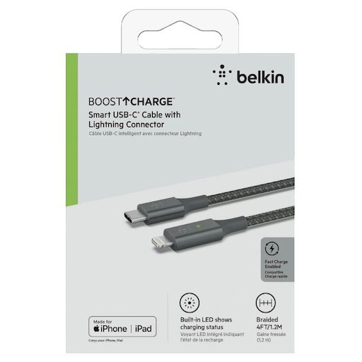 Câble USB-C vers Lightning Belkin BOOST ↑ CHARGE ™ Smart LED 1.2M Gris