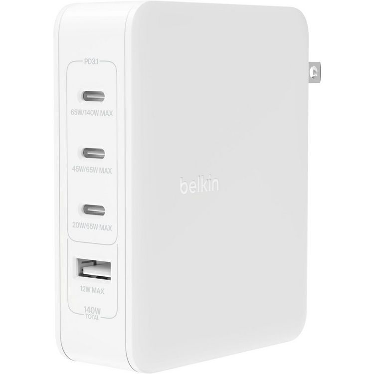 | Avantages | - Chargeur GaN à 4 ports : 3 ports USB-C et 1 port USB-A - Chargement simultané de 4 appareils max. avec une puissance totale de 140 W | |