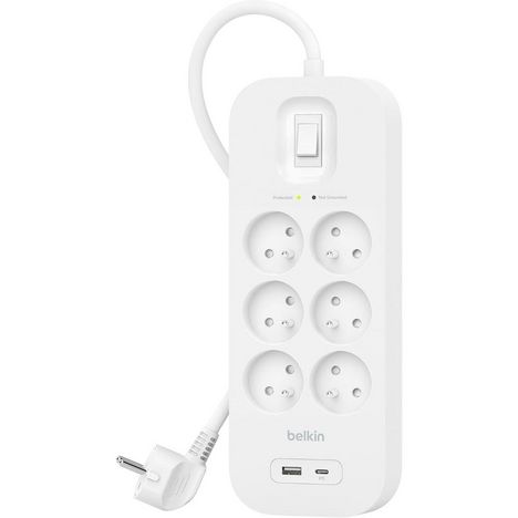 [Cet avis a été recueilli en réponse à une offre.] Bloc de 6 prises parafoudre et 1 port USB Belkin , qui offre une protection solide pour les appareils. Ce qui est admirable c'est le port USB intégré qui permet de brancher un téléphone pour pouvoir le recharger rapidement, il s'agit d'un choix audacieux. J'ai installé ce bloc de prise vers la télé ce qui permet d'y brancher la télé elle-même, la barre de son, la console, le sapin de Noël et également un portable. Elle est vraiment très robuste et très accessible au niveau du prix. Je recommande
