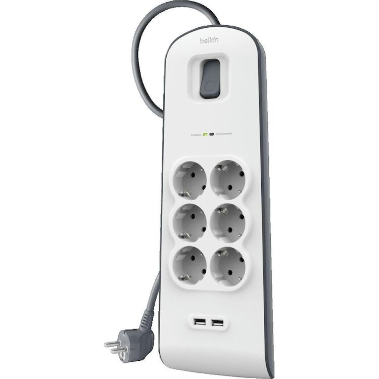 Multiprise Belkin avec protection contre les surtensions - 6 prises - blanc