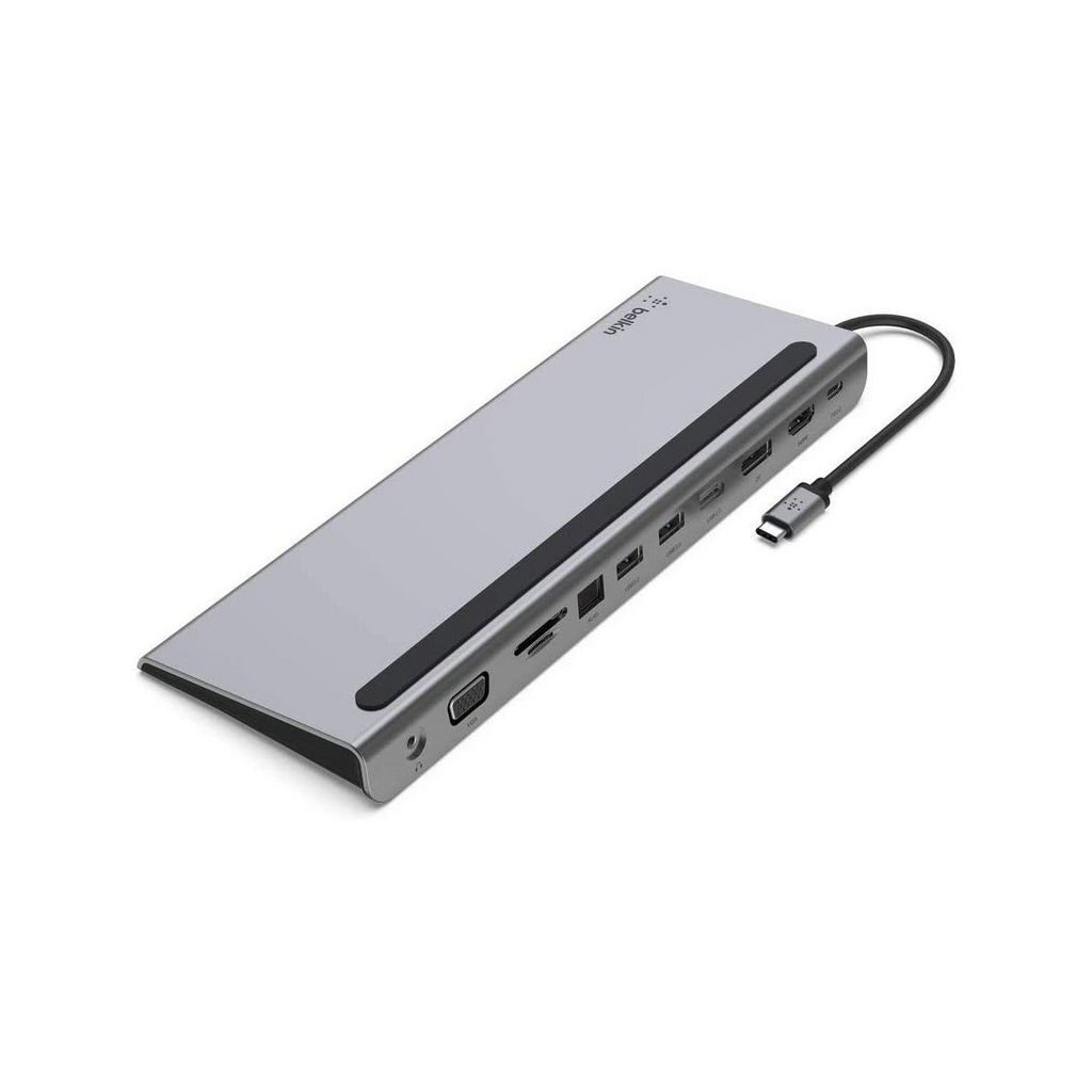 [Cet avis a été recueilli en réponse à une offre.] La station d'accueil Belkin est le dispositif idéal pour travailler. Elle dispose en effet de 11 ports différents pour brancher un écran ou une TV, un câble éthernet pour se connecter au réseau, un disque dur USB externe, un clavier et une souris et des haut parleurs, tout ça en même temps et avec un seul câble USB type C à débrancher quand on veut se déplacer. En plus, la station est légèrement inclinée et peut servir de support à l'ordinateur portable. Je l'ai essayée et je ne peux plus m'en passer !