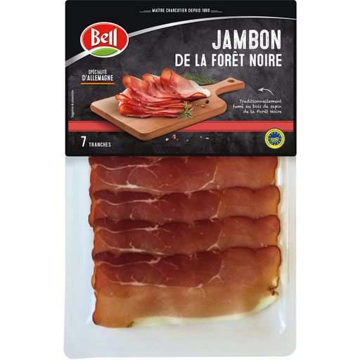 Jambon de la forêt noire. Traditionnellement fumé au bois de sapin de la Forêt Noire. Salé à la main in 7 Tranches BELL JAMBON FORET NOIRE 100G