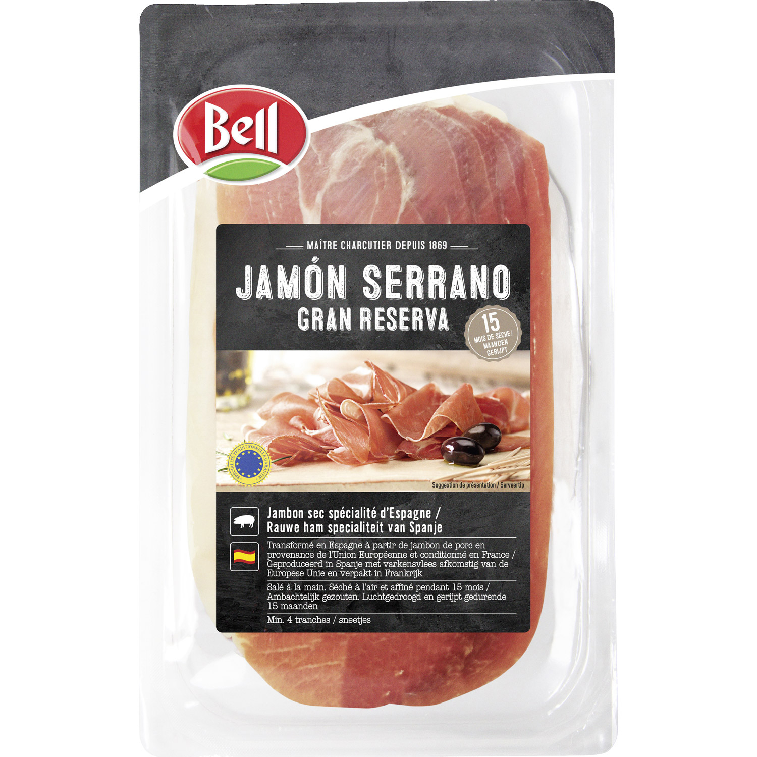 jambon sec spécialité d'Espagne. 15 mois de sèche JAMÓN SERRANO GRAN RESERVA 15M 80G BELL