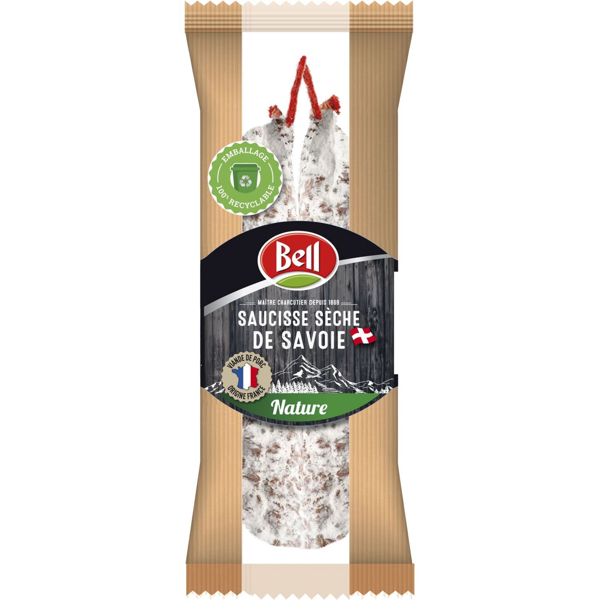 SAUCISSE COURBE SAVOIE 200G BELL Porc Français , emballage 100 % recyclable !